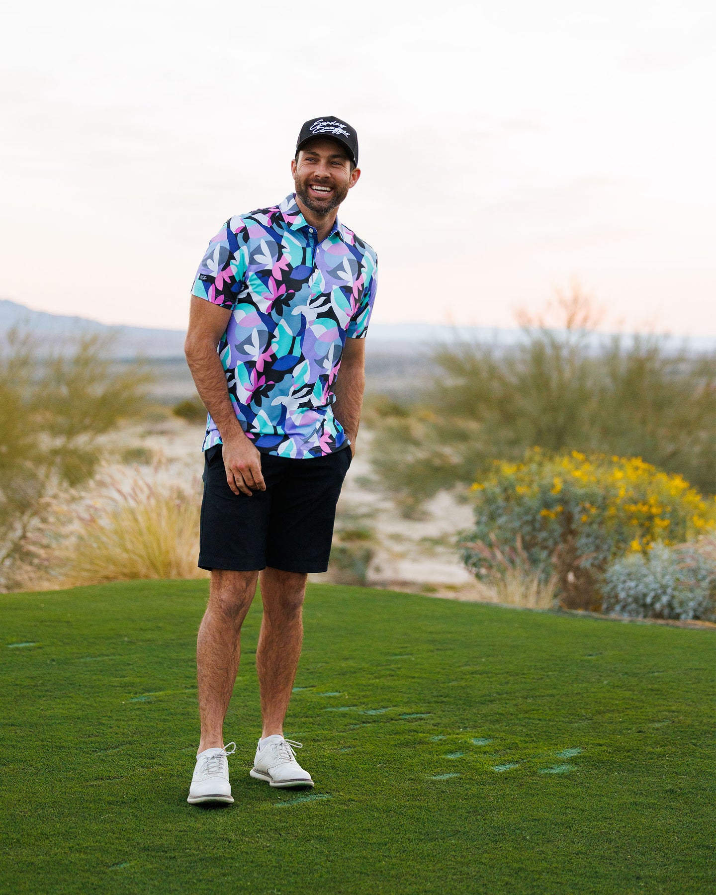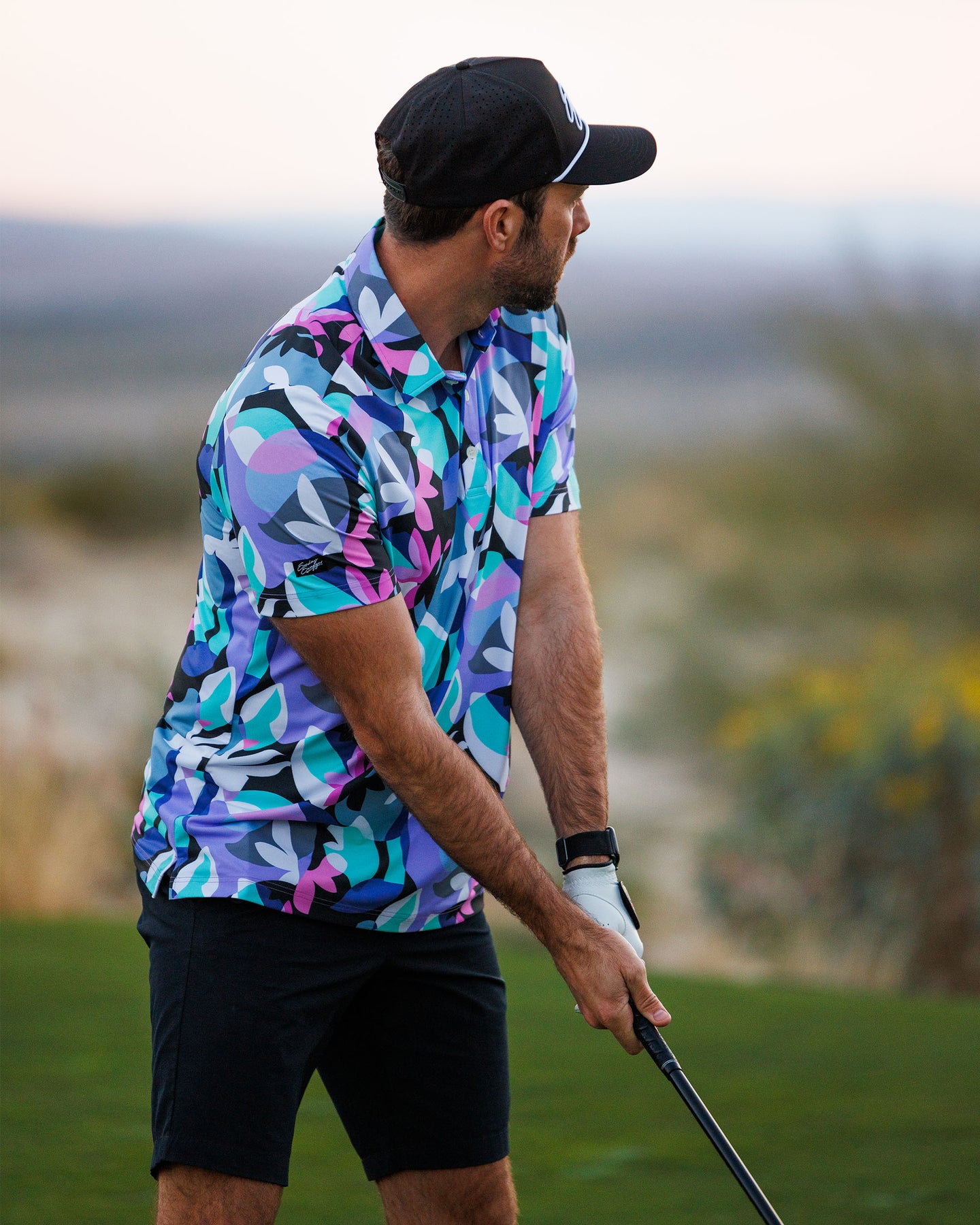 Style meets performance with our premium technical fabric. Our men's golf polos were designed with a 4-way stretch, UPF 40 sun protection, moisture wicking technology and a breathable poly spandex blend that is wrinkle resistant..