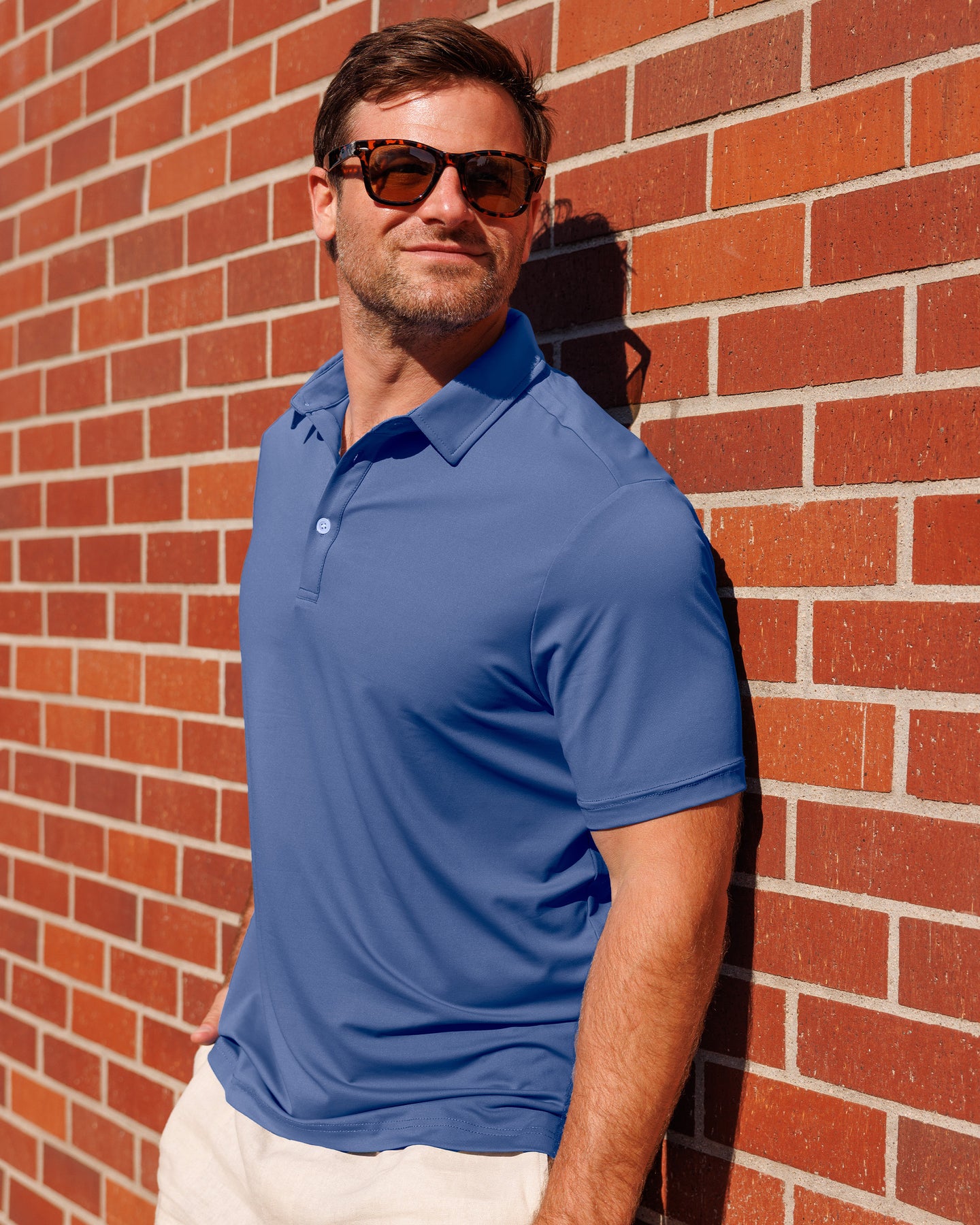 Meet the Atlantic Weekday Polo: a calm, confident blue built for the days that start early and finish strong. Clean lines, a classic three-button placket, and a smooth performance feel make this the polo you reach for when you want to look sharp without trying hard.