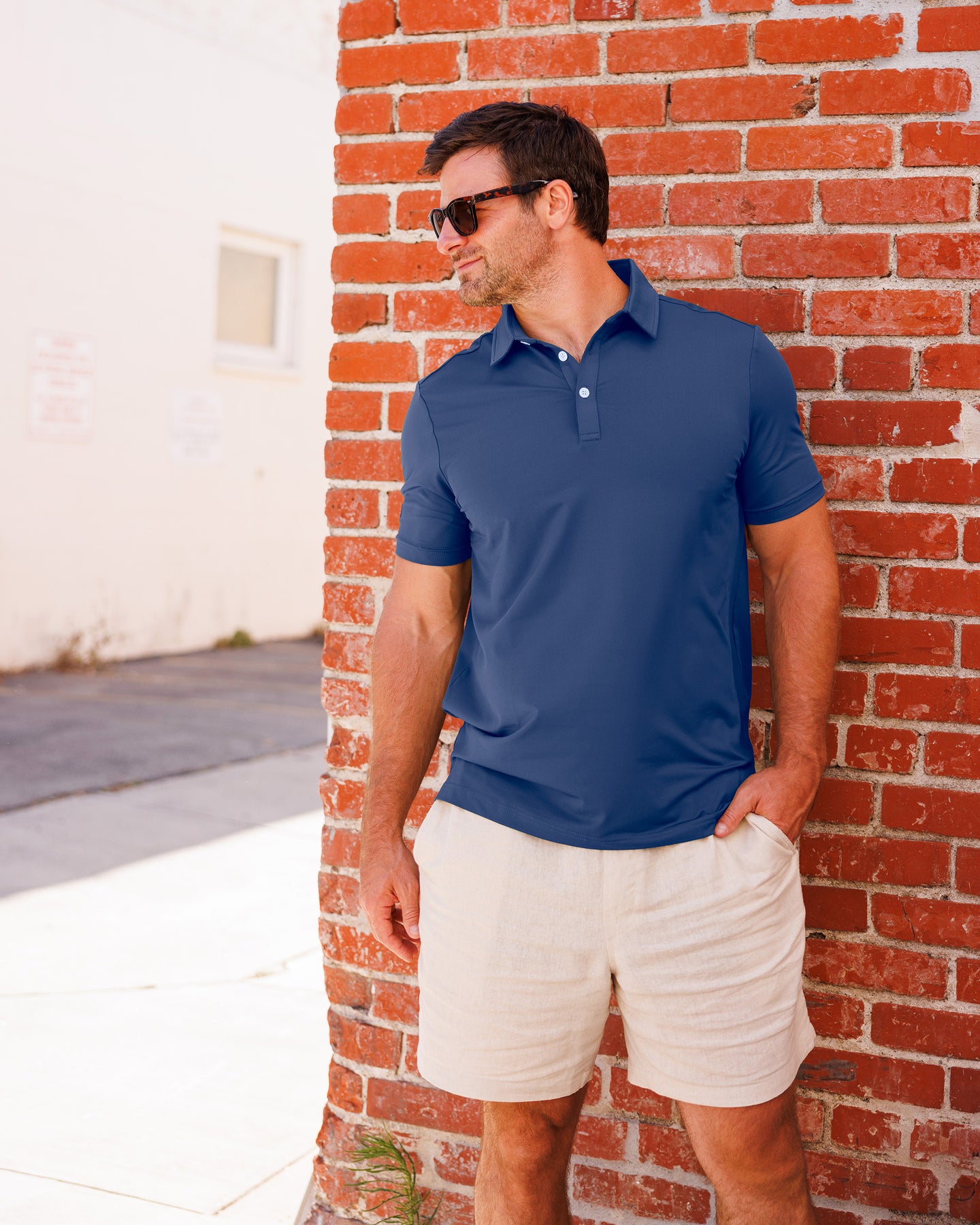 The classic Sunday Swagger feel that you know and love, now ready for the ole 9-5. Who knew comfort could look so professional? Style meets performance with our premium technical fabric. Our Men's Weekday Golf Polos were designed with a 4-way stretch, UPF 40 sun protection, moisture wicking technology and a breathable poly spandex blend that is wrinkle resistant.