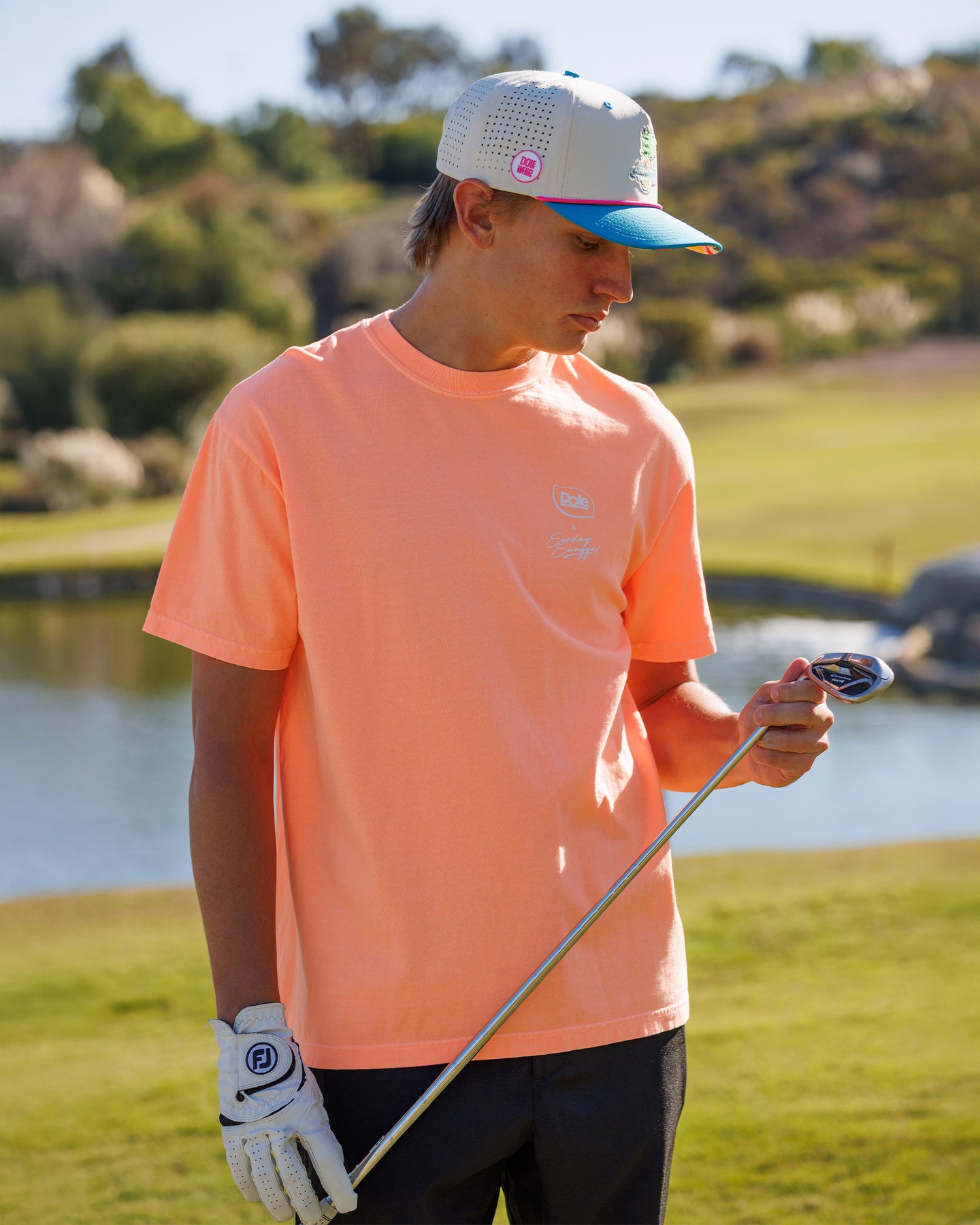 Peachy, playful, and ready for a tee time—this shirt brings the “Whip It and Rip It” Dole Whip pineapple character to life with a little tropical swagger. Lightweight comfort meets collab energy, perfect for golfers who like their game smooth and their style sweeter.