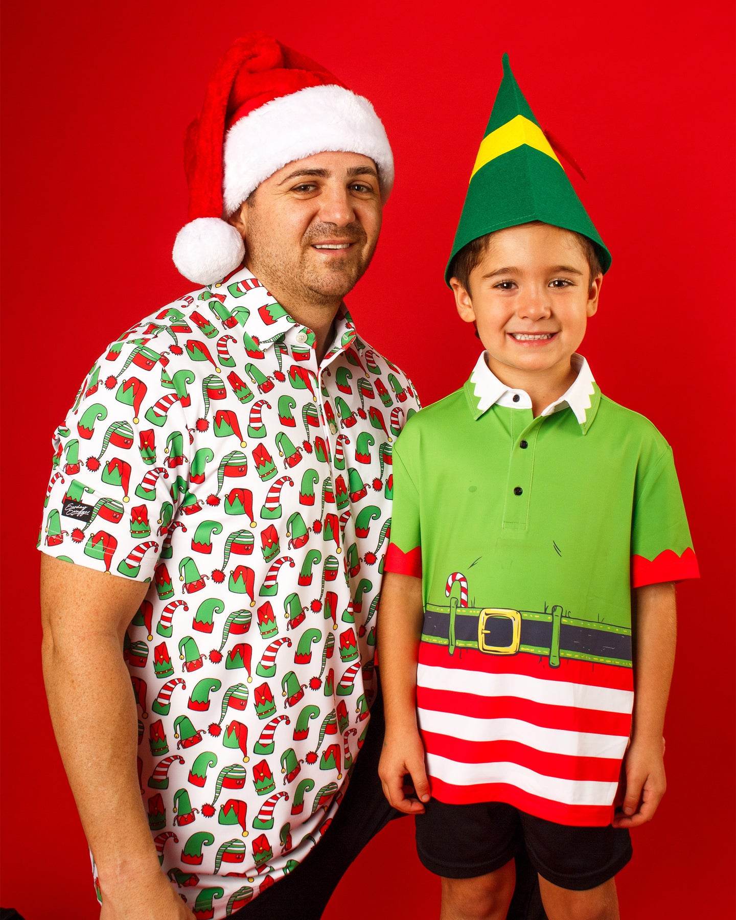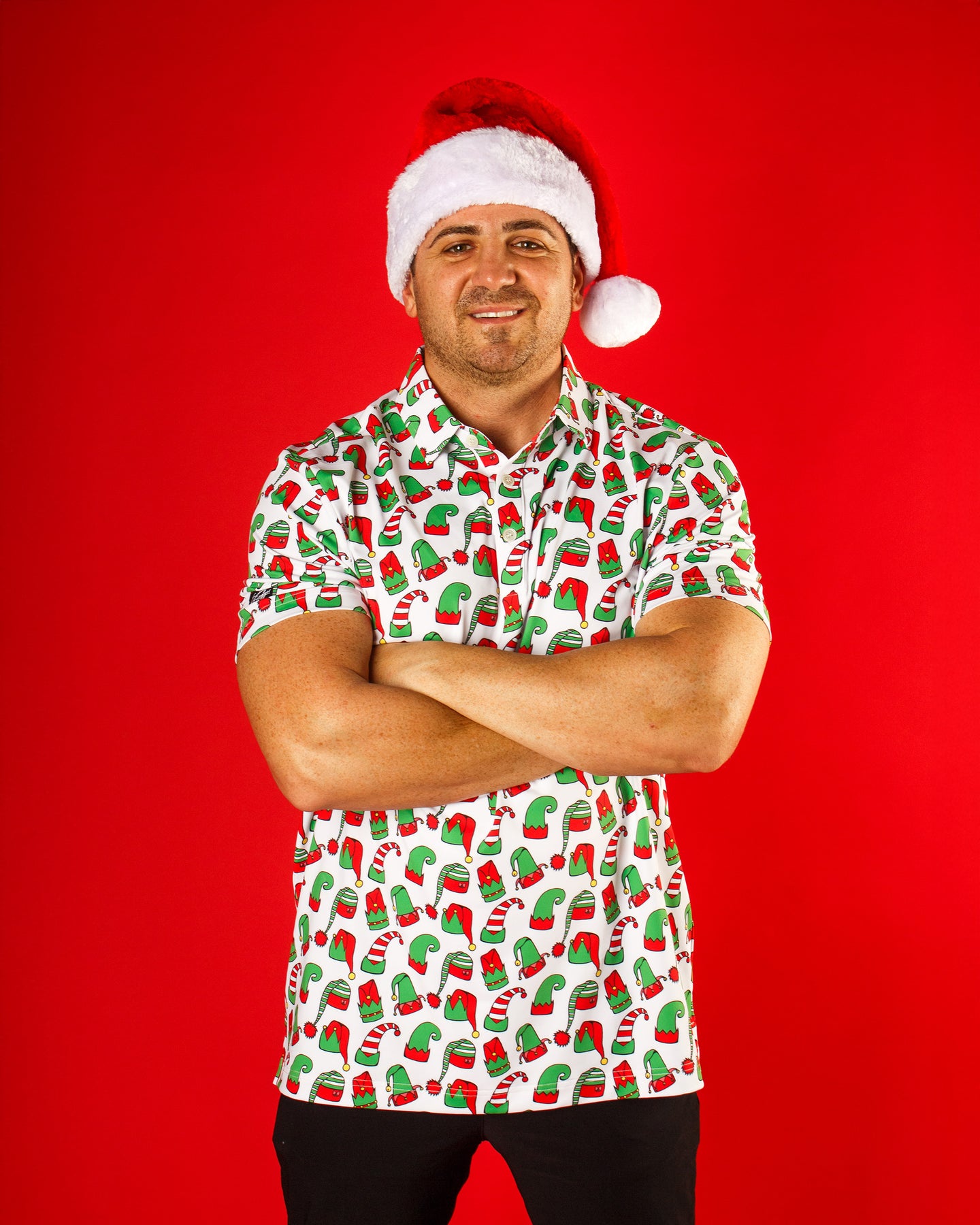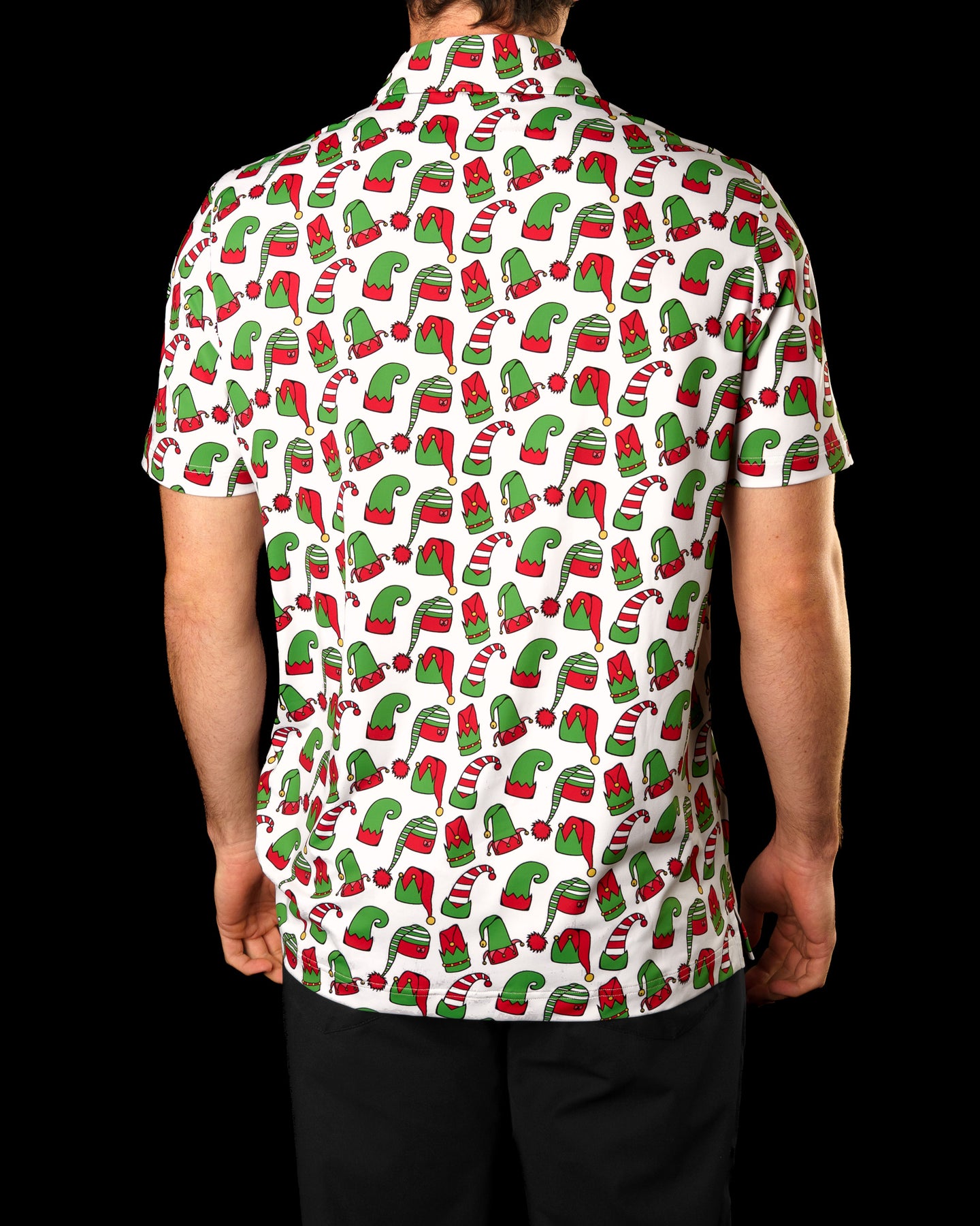 You don’t have to be a cotton-headed ninny muggins to rock this one — but it sure helps. Packed with elf hats, candy canes, and Christmas swagger, this polo is Buddy-approved and holiday-party ready. The only thing missing is your favorite syrup.