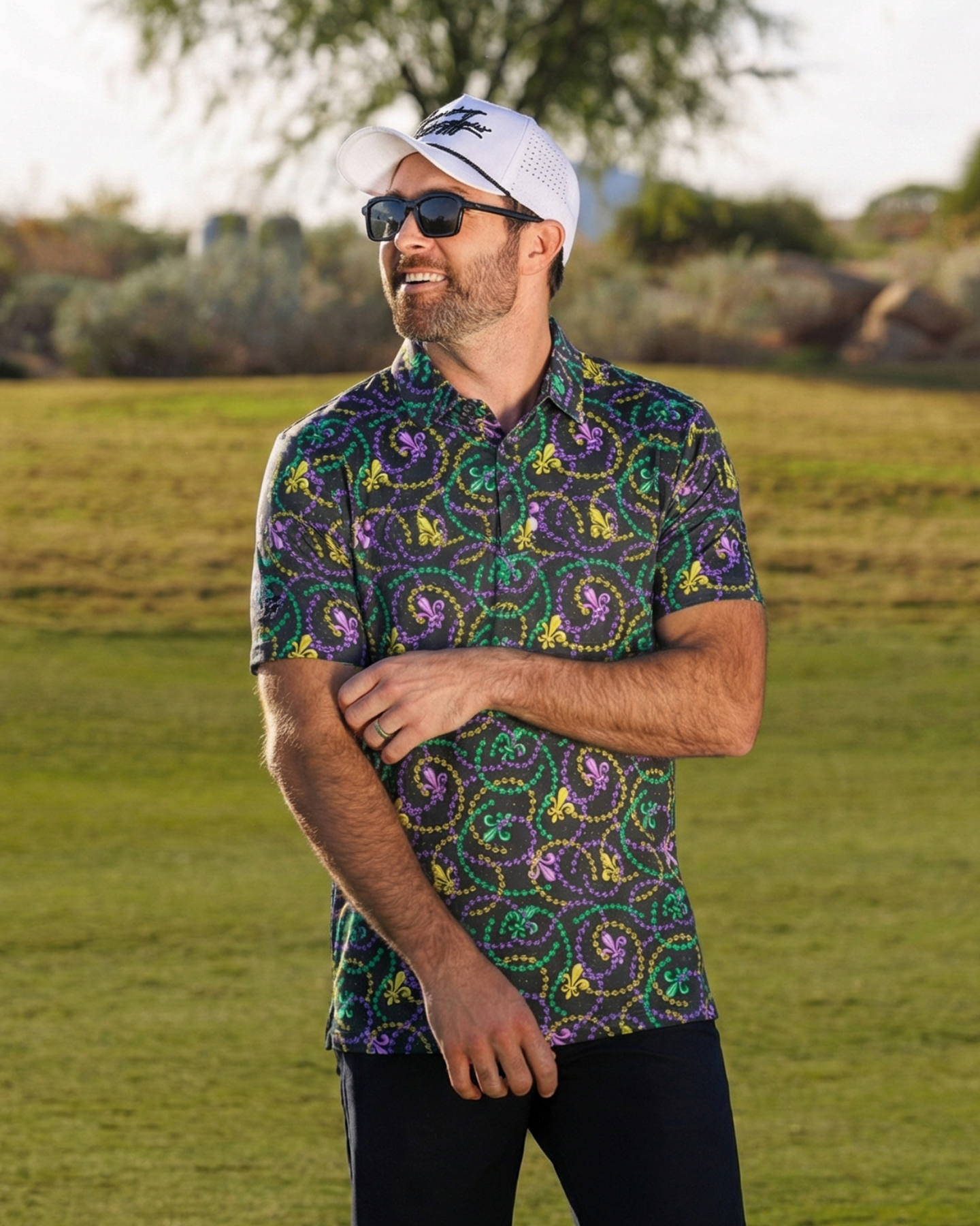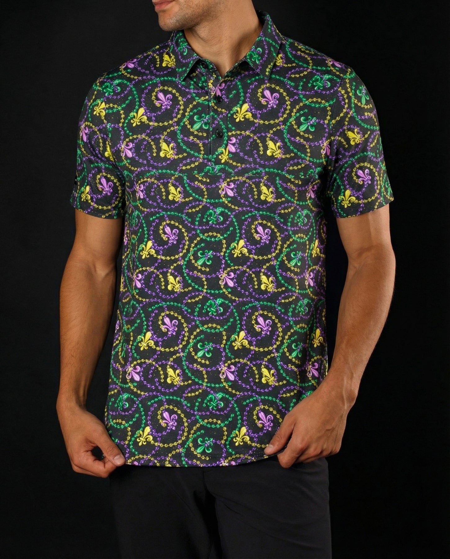Show ’Em isn’t here to blend in. Beads everywhere, purple/green/gold on full volume, and built for parade days, post-round chaos, and anyone who thinks subtle is overrated.