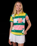 Some things just belong together — great swings, good company, and a polo that shows up ready for the moment. With bold stripes and blooming florals, this one looks right at home walking up 18 or celebrating afterward.