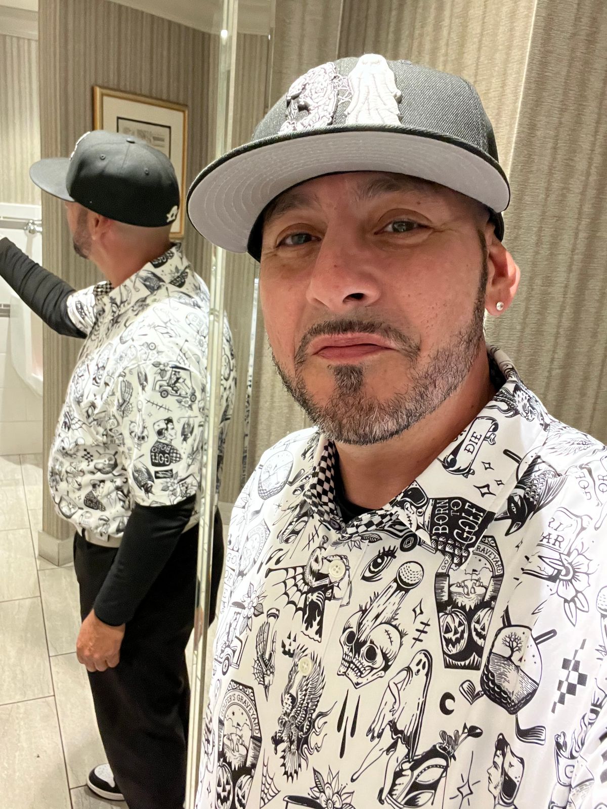 Comfort and style. Ready for 18 holes or a night on the town. Two thumbs up.