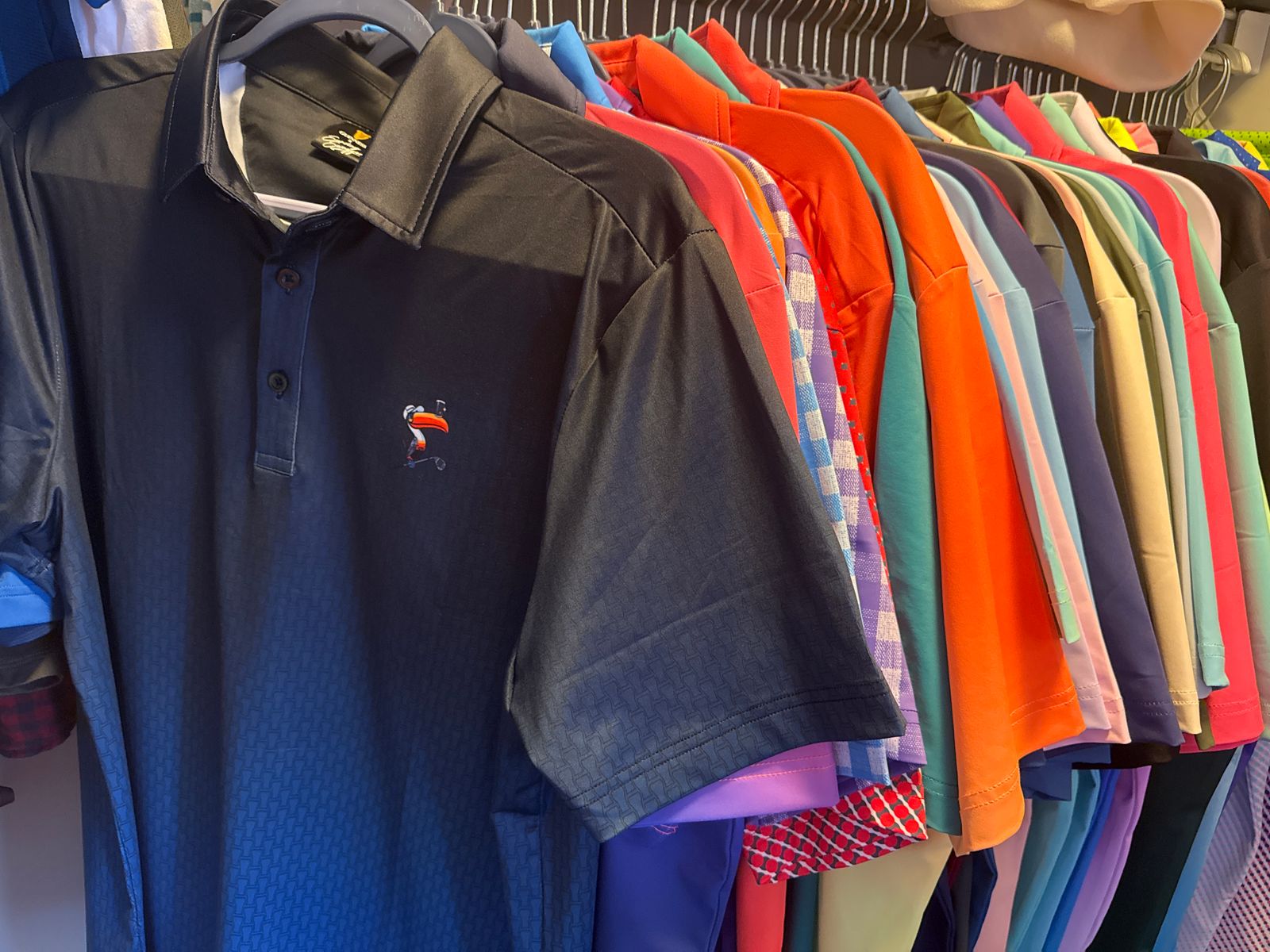 Style meets performance with our premium technical fabric. Our men's golf polos were designed with a 4-way stretch, UPF 40 sun protection, moisture wicking technology and a breathable poly spandex blend that is wrinkle resistant.