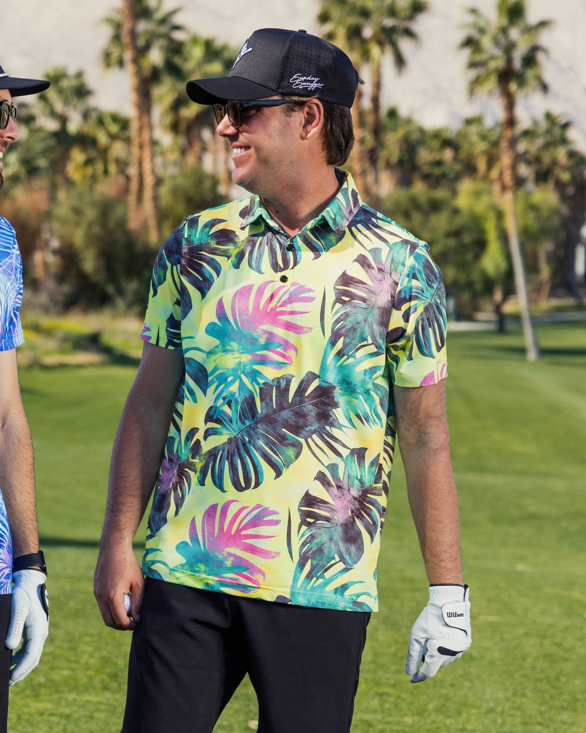 Bold, tropical, and effortlessly smooth—Rio Royale brings resort luxury straight to the course. Whether you're lining up a putt or lining up a post-round cocktail, this polo makes every round feel first class.